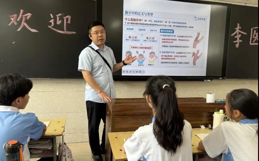在郾城區(qū)實(shí)驗(yàn)中學(xué),神經(jīng)內(nèi)科二病區(qū)副主任李闖圍繞就《健康中國(guó),中風(fēng)識(shí)別行動(dòng)》進(jìn)行授課。他結(jié)合多年臨床經(jīng)驗(yàn),圍繞什么是腦卒中、腦卒中的類型、發(fā)病原因與機(jī)制、高危因素、癥狀表現(xiàn)、緊急處理與急救等多方面內(nèi)容展開講解,并教授“中風(fēng) 120”口訣。通過情景模擬演示發(fā)現(xiàn)疑似癥狀后的正確應(yīng)對(duì)流程。針對(duì)學(xué)生群體的生活習(xí)慣,普及疾病基礎(chǔ)知識(shí)與科學(xué)預(yù)防方法,強(qiáng)調(diào)要規(guī)律作息,避免熬夜、適度運(yùn)動(dòng)、減少高糖飲食。