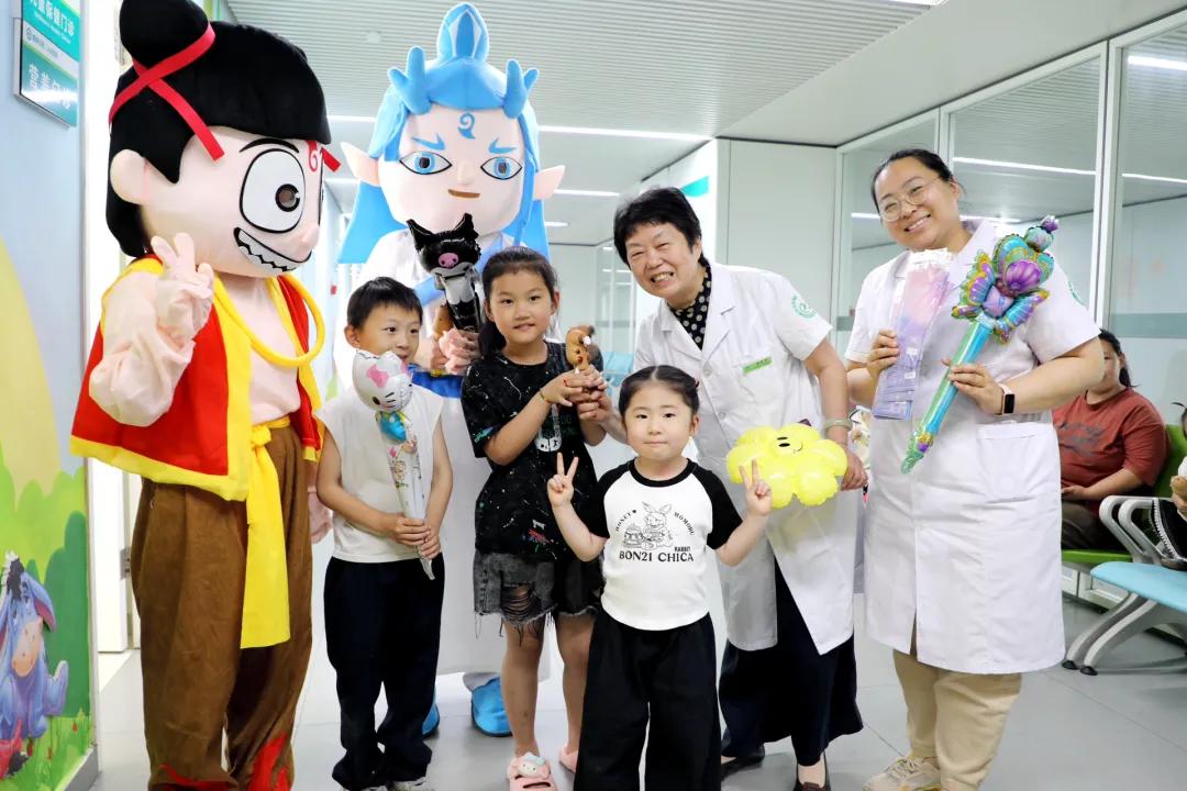 門診大廳化身兒童樂園,醫(yī)護人員化身哪吒、敖丙、花仙子等諸多可愛的卡通人物與小朋友們熱情互動,友好交流,派發(fā)精心準備的節(jié)日禮物。市二院黨委書記魏松,黨委副書記、院長胡海英攜班子成員及兒科專家、醫(yī)護團隊為小朋友們送上暖心的節(jié)日禮物與祝福,與孩子們共度“六一”。