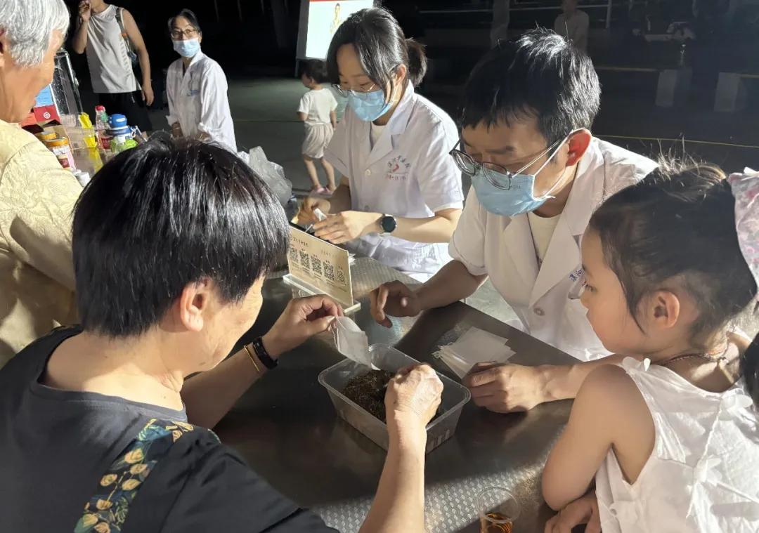 院黨委書記、院長楊軼,紀(jì)委書記劉家棟到夜市為群眾送上端午的關(guān)懷,活動現(xiàn)場群眾參與度高、積極互動。在中藥養(yǎng)生茶品鑒區(qū),藥學(xué)部醫(yī)務(wù)人員為群眾提供免費(fèi)的茶飲品嘗,并逐一介紹養(yǎng)生茶飲的性味與功效,以及在日常養(yǎng)生保健中的巧妙應(yīng)用,使人們對博大精深的中醫(yī)文化有了更為直觀深刻的認(rèn)識。