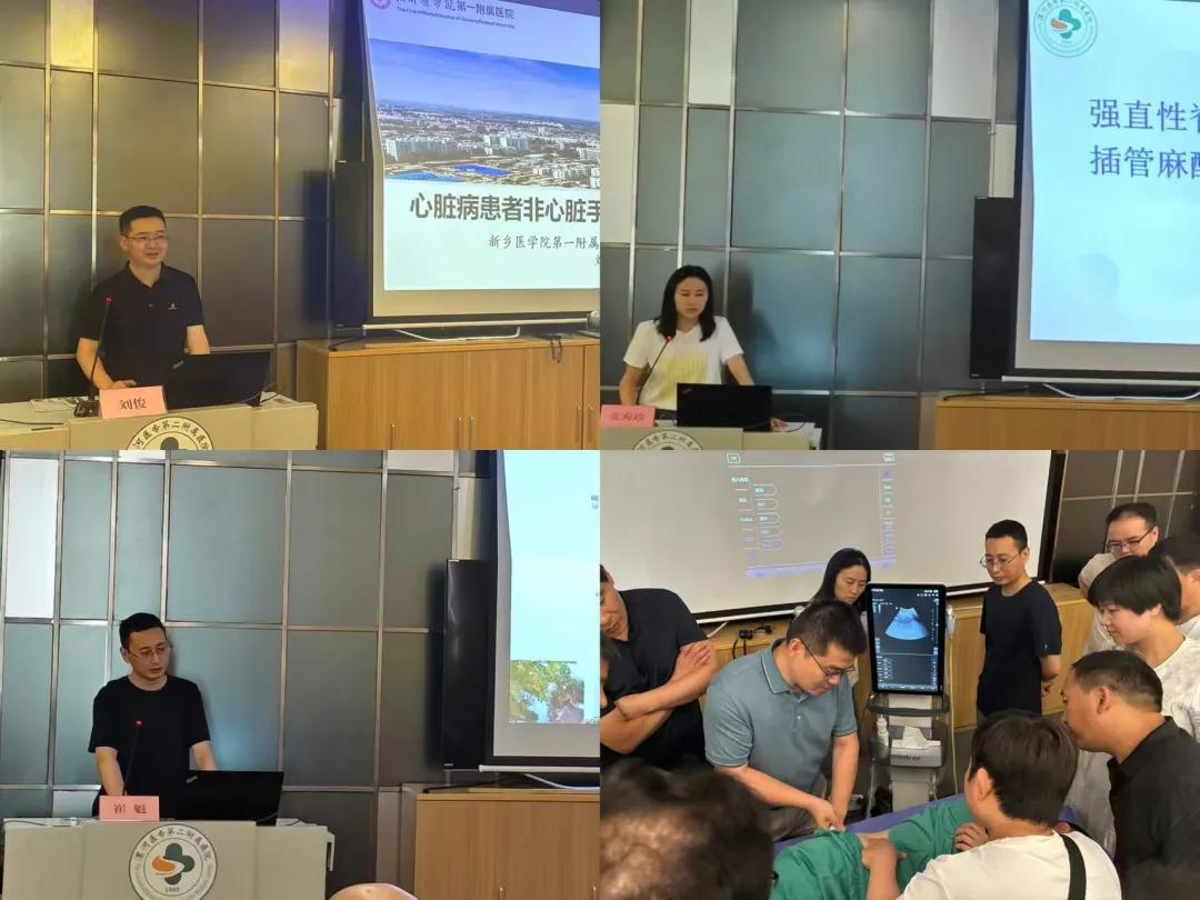 特殊患者麻醉管理質(zhì)控專(zhuān)題培訓(xùn)會(huì)上新鄉(xiāng)醫(yī)學(xué)院第一附屬醫(yī)院麻醉與圍術(shù)期醫(yī)學(xué)科劉俊主任講解了《心臟病患者非心臟手術(shù)的麻醉管理》,漯河市骨科醫(yī)院麻醉科副主任醫(yī)師張秀珍分享了《強(qiáng)直性脊柱炎患者纖支鏡氣管插管麻醉管理》,漯河市中心醫(yī)院麻醉科崔魁主任以《冠心病患者的麻醉管理》為題講解了冠心病患者的麻醉管理要點(diǎn),鄭州大學(xué)第一附屬醫(yī)院麻醉與圍術(shù)期醫(yī)學(xué)科葉皓天教授以現(xiàn)場(chǎng)授課結(jié)合實(shí)操的方式講授了《超聲引導(dǎo)下外周神經(jīng)阻滯》。