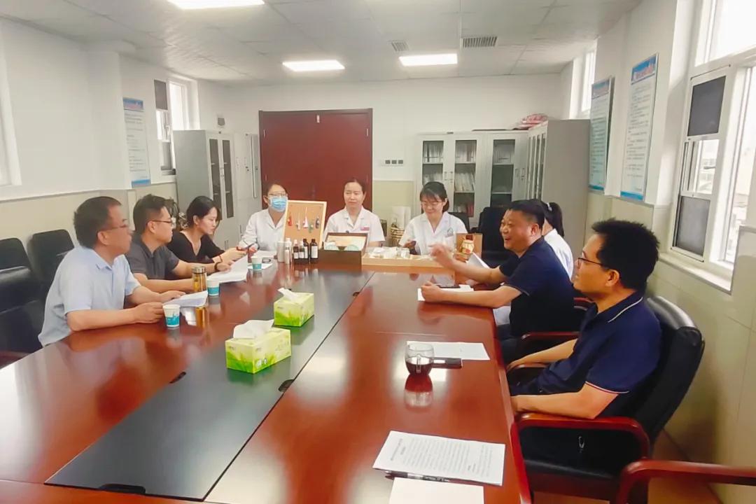 為深入挖掘中醫(yī)藥產(chǎn)業(yè)發(fā)展?jié)摿?,助推漯河中醫(yī)藥事業(yè)高質(zhì)量發(fā)展,6月20日上午,漯河市科學(xué)技術(shù)局黨組書記、局長效國強(qiáng)帶領(lǐng)中原食品實(shí)驗(yàn)室行政副主任、實(shí)驗(yàn)室服務(wù)中心主任高鵬,中原食品實(shí)驗(yàn)室綜合行政部部長,實(shí)驗(yàn)室服務(wù)中心綜合辦公室副主任張艷一行三人來院調(diào)研。漯河市中醫(yī)院紀(jì)委書記劉家棟,藥學(xué)部主任陳朝鋒以及中藥衍生品研發(fā)團(tuán)隊(duì)和相關(guān)醫(yī)療專家等人員參加會議。