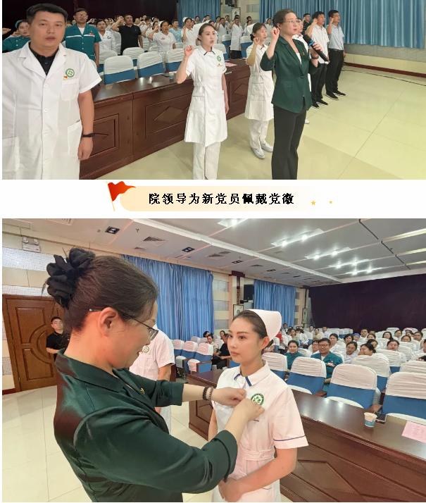 百年篳路藍(lán)縷,百年風(fēng)雨兼程?;顒右潦?,由醫(yī)院黨委班子為新黨員佩戴黨徽,以“一枚黨徽”凝聚紅色力量,以“雙重身份”踐行醫(yī)者初心;全體黨員在院黨委書記、院長楊軼的領(lǐng)誓下重溫入黨誓詞,鏗鏘誓言重溫入黨初心,醫(yī)心向黨堅(jiān)定奮進(jìn)信念。