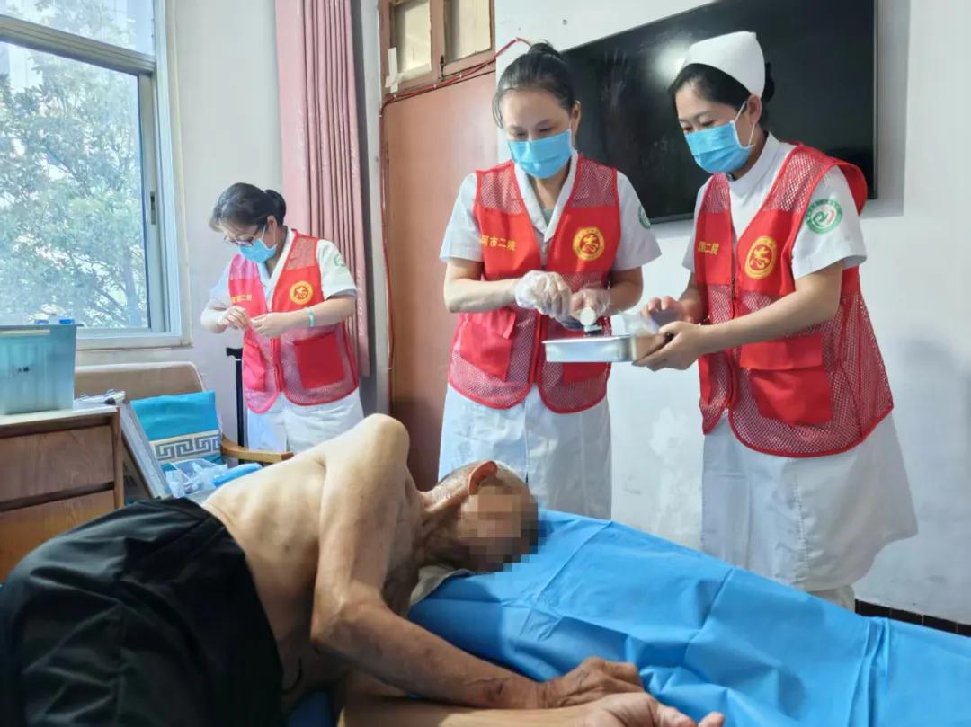7月10日,市二院急診科接到一位家住臨潁,90多歲高齡患者家屬的求助電話,老人因帶狀皰疹疼痛、瘙癢引起眩暈,行動(dòng)不便,無法前往醫(yī)院就診。院黨委了解情況后高度重視,立即安排全國(guó)先進(jìn)工作者、全國(guó)“五一”勞動(dòng)獎(jiǎng)?wù)芦@得者、中醫(yī)針灸科主任朱青霞,帶領(lǐng)護(hù)士長(zhǎng)安虹、副主任康復(fù)師陳莉上門為患者診治。