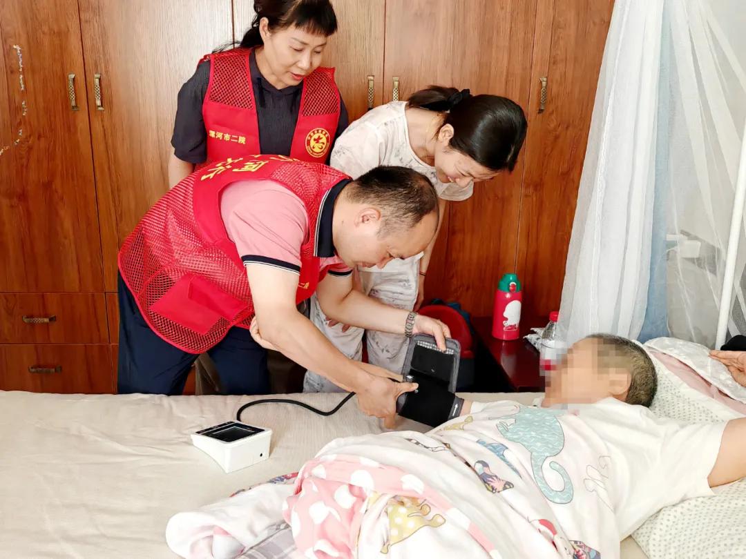 許阿姨患有心臟病、高血壓及腰椎疾病多年,天氣炎熱她的血壓一直不穩(wěn)定,家屬通過微信群向科室副主任楊光咨詢。7月16日,楊光在了解此情況后,與李慧新主任商量,決定帶醫(yī)療團(tuán)隊(duì)一起前往許阿姨家中,為她進(jìn)行血壓測量、心臟聽診等檢查,對其日常生活中的注意事項(xiàng)進(jìn)行了詳細(xì)的指導(dǎo)。同時,還對許阿姨的用藥方案和康復(fù)計(jì)劃進(jìn)行了相應(yīng)的調(diào)整。