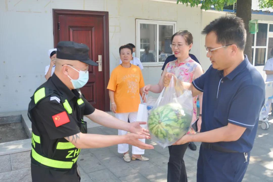 院領(lǐng)導(dǎo)帶隊(duì),工會(huì)、團(tuán)委志愿者組成慰問(wèn)小組,慰問(wèn)高溫酷暑中堅(jiān)守在各個(gè)崗位上的醫(yī)務(wù)、保安、保潔等工作人員。送去了包含酸梅湯、風(fēng)油精、西瓜等實(shí)用防暑降溫用品的“清涼包”。這些物品不僅能夠幫助職工在高溫環(huán)境下有效緩解暑熱燥氣,更體現(xiàn)了醫(yī)院對(duì)職工身心健康的深切關(guān)懷。