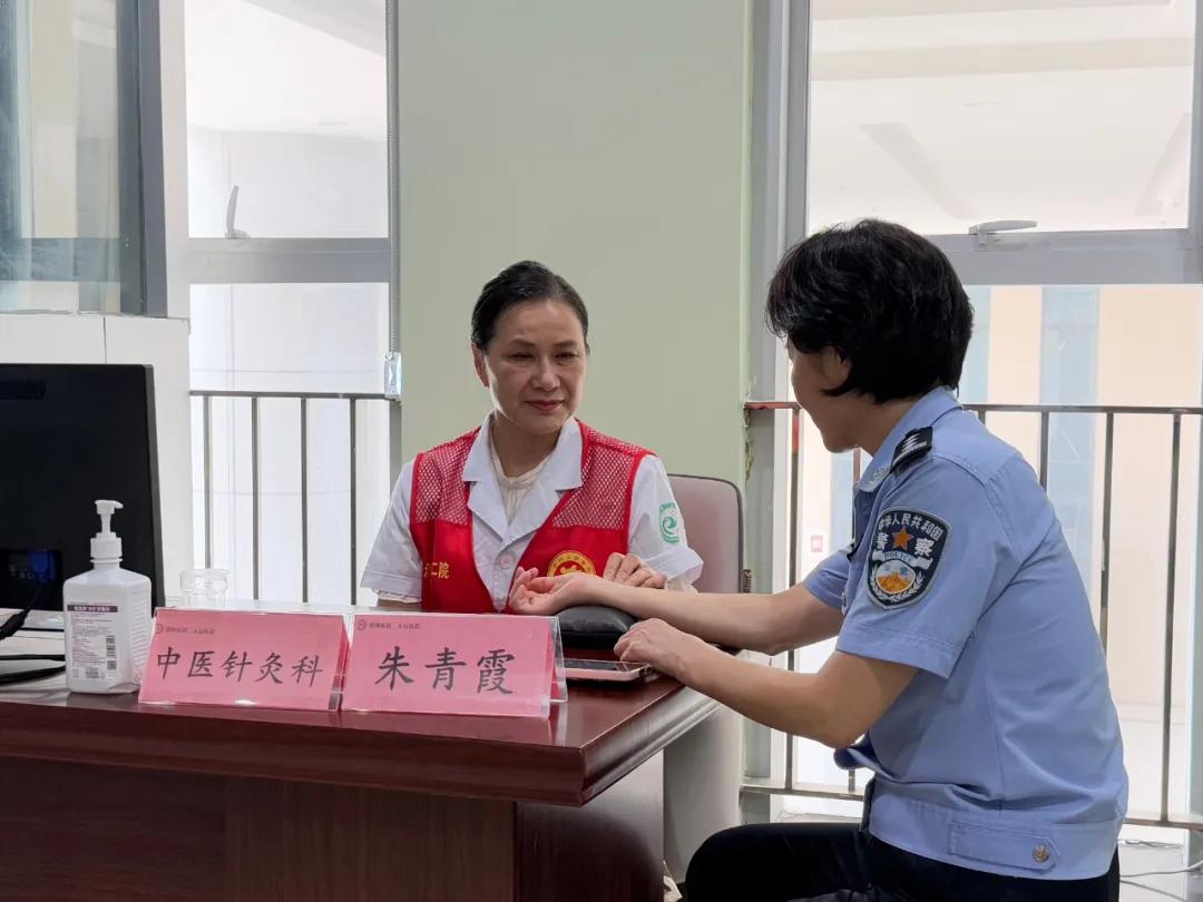 8月18日下午,市二院中醫(yī)針灸科主任朱青霞帶領(lǐng)10余名科室專家、志愿者走進(jìn)市公安局,開(kāi)展專場(chǎng)義診活動(dòng)。作為醫(yī)院“中醫(yī)藥文化走進(jìn)機(jī)關(guān)”系列活動(dòng)的重要一環(huán),此次服務(wù)精準(zhǔn)對(duì)接公安民警輔警的職業(yè)健康需求,將中醫(yī)特色診療送到平安守護(hù)一線。