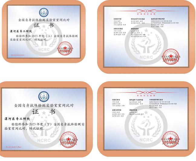 近日,漯河醫(yī)專二附院(漯河市骨科醫(yī)院、漯河市立醫(yī)院)檢驗(yàn)科自身免疫實(shí)驗(yàn)室在“國家皮膚與免疫疾病臨床醫(yī)學(xué)研究中心(NCRC)”組織的、北京協(xié)和醫(yī)院牽頭的全國自身抗體檢測實(shí)驗(yàn)室能力驗(yàn)證中,再次憑借卓越的檢測能力和穩(wěn)定的技術(shù)水平,斬獲合格證書。這已經(jīng)是自2023年以來,連續(xù)3年獲此殊榮,充分說明了醫(yī)院自身免疫實(shí)驗(yàn)室的檢測結(jié)果與全國251家實(shí)驗(yàn)室數(shù)據(jù)高度一致,達(dá)到國家級(jí)標(biāo)準(zhǔn)化水平,為臨床診斷提供了堅(jiān)實(shí)可靠的依據(jù)。