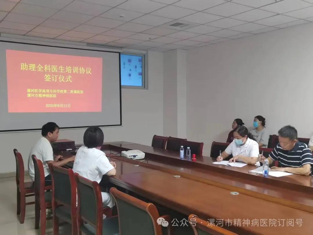 8月21日,漯河醫(yī)學(xué)高等??茖W(xué)校第二附屬醫(yī)院劉國鋒書記及相關(guān)負(fù)責(zé)人帶領(lǐng)30余名助理全科醫(yī)生到漯河市精神病醫(yī)院開展參觀學(xué)習(xí)活動?,F(xiàn)場簽訂助理全科醫(yī)生培訓(xùn)合作協(xié)議,共同搭建理論與實(shí)踐相結(jié)合的學(xué)習(xí)平臺。