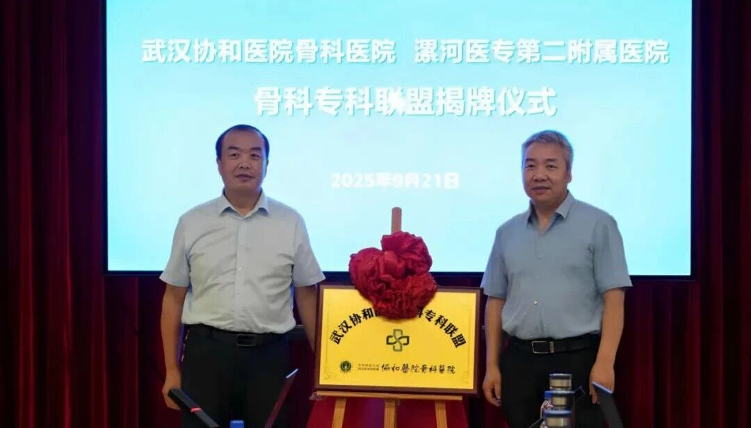 隨后,武漢協(xié)和醫(yī)院骨科醫(yī)院楊操教授和漯河醫(yī)專二附院王齊超院長(zhǎng)共同為“武漢協(xié)和醫(yī)院骨科??坡?lián)盟”揭牌,標(biāo)志著區(qū)域醫(yī)療衛(wèi)生協(xié)同發(fā)展邁入新階段。