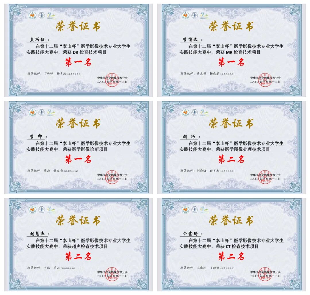 其中學(xué)生皇巧梅、李博文、李印分別榮獲DR、MRI檢查技術(shù)項目和醫(yī)學(xué)影像診斷項目第一名,劉慧杰、仝鑫琦、胡巧同學(xué)分別榮獲超聲、CT檢查技術(shù)和醫(yī)學(xué)圖像處理項目第二名,楊勇政老師在教師教學(xué)比賽中榮獲優(yōu)秀創(chuàng)新大賽示范課堂,最終參賽團隊以優(yōu)異的綜合成績摘得團體項目競賽第一名的桂冠,優(yōu)秀的成績贏得了大賽評委和參賽同道的廣泛贊譽。這也是繼2018年首次參加該賽事以來,漯河醫(yī)專二附院醫(yī)學(xué)影像教學(xué)團隊取得的又一優(yōu)異成績。