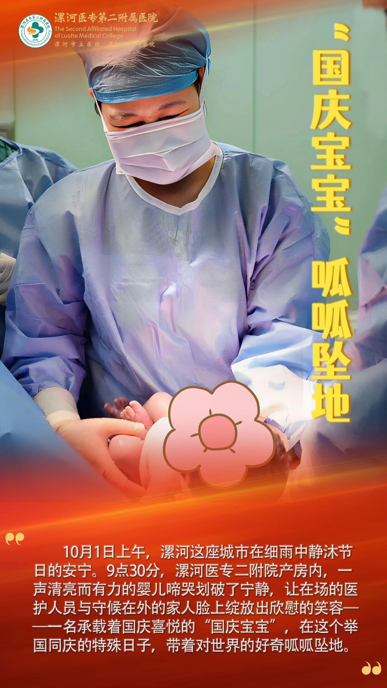 10月1日上午,漯河這座城市在細(xì)雨中靜沐節(jié)日的安寧。9點(diǎn)30分,漯河醫(yī)專二附院產(chǎn)房?jī)?nèi),一聲清亮而有力的嬰兒啼哭劃破了寧?kù)o,讓在場(chǎng)的醫(yī)護(hù)人員與守候在外的家人臉上綻放出欣慰的笑容——一名承載著國(guó)慶喜悅的“國(guó)慶寶寶”,在這個(gè)舉國(guó)同慶的特殊日子,帶著對(duì)世界的好奇呱呱墜地。