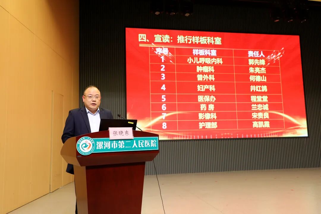 黨委副書記、院長胡海英宣布漯河市第二人民醫(yī)院8S精益管理項目正式啟動,標志著醫(yī)院在精益管理升級之路上邁出關鍵一步,全場響起熱烈掌聲。