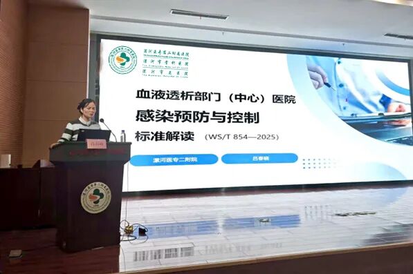 規(guī)范與賦能并重,夯實(shí)安全基石。 在質(zhì)量安全層面,漯河醫(yī)專二附院血液凈化室護(hù)士長(zhǎng)呂春曉對(duì)《血液透析部門(中心)醫(yī)院感染預(yù)防與控制標(biāo)準(zhǔn)》進(jìn)行了權(quán)威解讀,從建筑布局、人員管理、操作流程、監(jiān)測(cè)要求等多個(gè)方面,深入講解了標(biāo)準(zhǔn)的核心要點(diǎn),為各醫(yī)療機(jī)構(gòu)落實(shí)規(guī)范化管理、確?;颊甙踩峁┝艘罁?jù)。由漯河市婦幼保健院血液凈化室護(hù)士長(zhǎng)劉曉靜與臨潁縣人民醫(yī)院血液凈化室護(hù)士長(zhǎng)陳曉夢(mèng)主持會(huì)議。