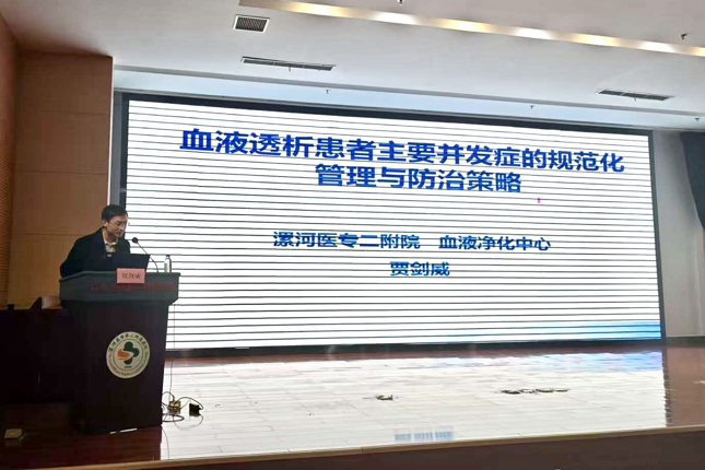漯河醫(yī)專二附院賈劍威主治醫(yī)師以《血液透析患者主要并發(fā)癥的規(guī)范化管理與防控策略》為題。圍繞常見并發(fā)癥的發(fā)生機(jī)制、風(fēng)險(xiǎn)評(píng)估到綜合防治策略,強(qiáng)調(diào)實(shí)施個(gè)體化、全程化管理的重要性和全面提升患者長(zhǎng)期生活質(zhì)量的醫(yī)療目標(biāo)。由漯河市中醫(yī)院血液凈化室護(hù)士長(zhǎng)鄭曉玲與舞陽(yáng)縣中心醫(yī)院血液凈化室護(hù)士長(zhǎng)徐彩霞主持會(huì)議。