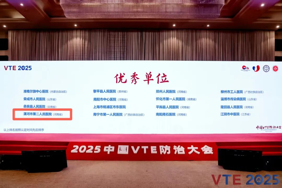 2025年10月31日,由全國肺栓塞和深靜脈血栓形成防治能力建設項目辦公室、協(xié)同醫(yī)療健康基金會聯合主辦的“2025年中國VTE防治大會”在北京成功舉行。會上,漯河市第二人民醫(yī)院憑借扎實的防治成效與規(guī)范的管理體系,被授予“全國肺栓塞和深靜脈血栓形成防治能力建設項目優(yōu)秀單位”稱號。副院長張曉東代表醫(yī)院參會并接受授牌,這也是當前漯河市域內唯一通過此項國家評審的醫(yī)療機構。