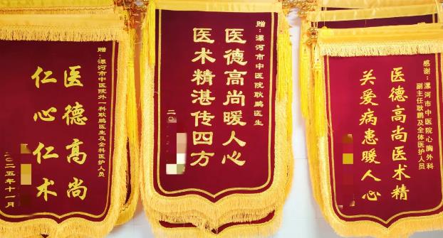 近日,漯河市中醫(yī)院外一科副主任耿鵬的診室里暖意融融,一周之內(nèi),三面飽含深情的錦旗相繼送達(dá),“醫(yī)德高尚 仁心仁術(shù)”“大醫(yī)精誠德醫(yī)雙馨 仁心仁術(shù)情暖人心”等燙金大字,不僅見證著患者的康復(fù)喜悅,更鐫刻著一位醫(yī)者對(duì)職業(yè)的敬畏與堅(jiān)守。