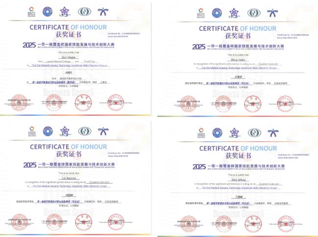 10月23日至26日,2025“一帶一路”暨金磚國家技能發(fā)展與技術(shù)創(chuàng)新大賽——醫(yī)學(xué)影像技術(shù)職業(yè)技能賽項在北京衛(wèi)生職業(yè)學(xué)院舉行。醫(yī)學(xué)影像團(tuán)隊在周山主任帶領(lǐng)下,與來自全國61所職業(yè)院校的優(yōu)秀師生同場競技,師生團(tuán)隊奮勇爭先、發(fā)揮出色,在所有學(xué)生實踐技能比賽及教師教學(xué)比賽中均獲優(yōu)異獎項。