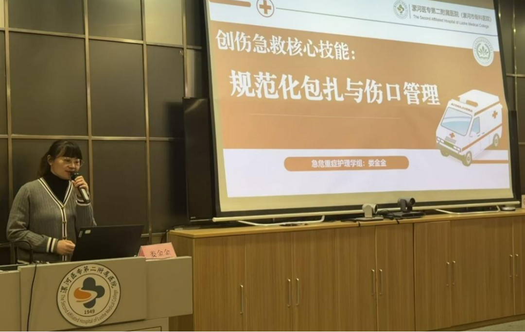 急危重癥護理學(xué)組組長婁金金聚焦《創(chuàng)傷急救核心技能:規(guī)范化包扎與傷口管理》,結(jié)合“黃金1小時”救治原則,強調(diào)包扎操作的時效性與規(guī)范性,通過對比不同傷口處理案例,演示正確操作對控制出血、預(yù)防感染的關(guān)鍵作用,夯實醫(yī)護人員的基礎(chǔ)急救能力。