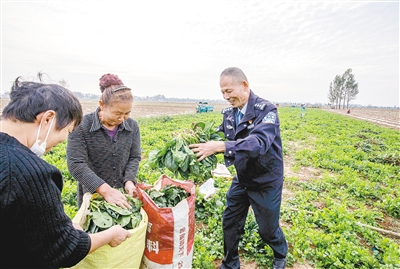 陳曉磐幫蔬菜種植戶收菠菜(資料圖片)。