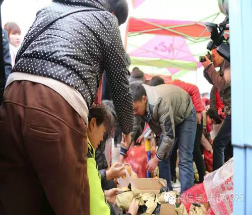 果農胡亞峰:今天帶來了一千多斤梨,現(xiàn)在馬上就賣完了,真是要感謝這個愛心大集,平時都不好賣,今天一個多小時就賣出去了一千多斤梨,特別感謝。