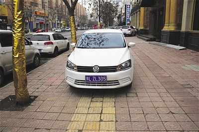 12月23日遼河路上占壓盲道。