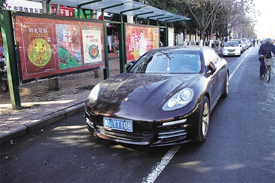 12月22日嶗山路上占壓公交車位。