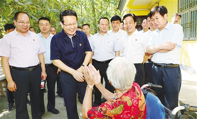 9月4日,市委書記蒿慧杰在舞陽縣辛安鎮(zhèn)貧困人口托養(yǎng)中心詳細了解老人們的生活情況。
