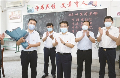 他強(qiáng)調(diào),教師承載著教書(shū)育人的神圣職責(zé)使命,職業(yè)崇高、受人尊敬,責(zé)任重大、使命光榮,希望廣大教師忠誠(chéng)履職盡責(zé),認(rèn)真完成黨和人民群眾賦予的職責(zé)使命,為我市教育事業(yè)做出新的更大貢獻(xiàn)。各級(jí)、各部門(mén)要持續(xù)把教育放在優(yōu)先發(fā)展的戰(zhàn)略地位,更加關(guān)注教育、支持教育、關(guān)心教師,營(yíng)造有利于教師成長(zhǎng)、教育發(fā)展的良好風(fēng)尚,讓尊師重教在沙澧大地蔚然成風(fēng),讓教師更受尊重、更有幸福感、更有榮譽(yù)感,共同推動(dòng)教育事業(yè)高質(zhì)量發(fā)展。全市各級(jí)、各部門(mén)特別是教育部門(mén),一方面要慎終如始抓好秋冬季疫情防控,堅(jiān)持人民至上、生命至上,備足備齊疫情防控物資,把常態(tài)化疫情防控措施落實(shí)落細(xì),進(jìn)一步提高應(yīng)急處置能力,確保發(fā)現(xiàn)問(wèn)題能夠立即處置解決,切實(shí)保障廣大師生身體健康和生命安全。另一方面,要扎實(shí)推動(dòng)教育事業(yè)高質(zhì)量發(fā)展。要深入貫徹習(xí)近平總書(shū)記關(guān)于教育工作的重要講話和指示批示精神,把黨的教育方針和立德樹(shù)人根本任務(wù)貫穿到教育教學(xué)工作的各領(lǐng)域、各環(huán)節(jié)、各方面,進(jìn)一步加強(qiáng)廣大師生的思想政治教育,以黨的建設(shè)高質(zhì)量推動(dòng)教育事業(yè)高質(zhì)量發(fā)展,培養(yǎng)更多具有共產(chǎn)主義遠(yuǎn)大理想和中國(guó)特色社會(huì)主義共同理想、愛(ài)黨愛(ài)國(guó)愛(ài)社會(huì)主義、德智體美勞全面發(fā)展的社會(huì)主義建設(shè)者和接班人。