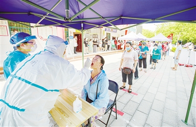 8月7日至8月8日,我市用兩天時(shí)間對(duì)中心城區(qū)進(jìn)行全員核酸檢測(cè)。冒著高溫,醫(yī)護(hù)人員全副武裝,社區(qū)工作者、志愿者在現(xiàn)場(chǎng)維持秩序,確保核酸檢測(cè)采樣順利進(jìn)行。在這場(chǎng)沒(méi)有硝煙的戰(zhàn)斗中,醫(yī)護(hù)人員、社區(qū)工作者、志愿者們共同譜寫了一曲戰(zhàn)“疫”之歌。
