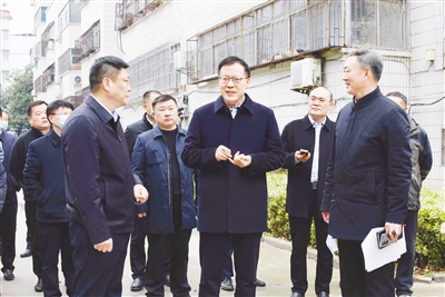 3月17日上午,市委書記秦保強等在郾城區(qū)龍塔街道淞江小區(qū)察看社區(qū)網(wǎng)格化管理情況。