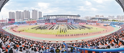 10月17日,市第九屆運動會、第七屆職工運動會、市直機關(guān)運動會暨全民健身大會在市體育中心隆重開幕。記者 王曉東 攝