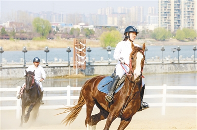 春光明媚,微風(fēng)和煦,沙澧河風(fēng)景區(qū)游人如織,中科花鹿名馬俱樂(lè)部銀灘樂(lè)園基地“汗血寶馬”項(xiàng)目吸引了眾多游客和市民。這是中科花鹿農(nóng)業(yè)發(fā)展有限公司正在實(shí)施的文旅體融合項(xiàng)目,設(shè)有馬術(shù)教學(xué)、皇家馬車(chē)乘坐和寶馬騎行等多種沉浸式體驗(yàn)活動(dòng)。