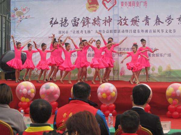 在啟動儀式上舉行“童心繪沙澧”主題活動,20多名留守兒童/殘疾兒童與青年志愿者共同在風(fēng)箏上繪制沙澧美景,并一起放飛風(fēng)箏;一個16的漯河小伙子用6個月時間,精心制作了長達33米的巨型大風(fēng)箏,放飛在商業(yè)廣場的時空;中學(xué)生表演的舞蹈節(jié)目,美奐美倫,特別受到廣大志愿者和留守兒童/殘疾兒童們的歡迎。
