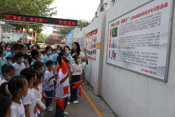 在音樂聲和全校同學的掌聲中,一年級班主任老師帶領(lǐng)新同學揮動手中的小紅旗,昂首邁步走到操場前臺,仿佛在向全世界宣告:從今天起就能在溫馨的校園里學到文化知識,懂得做人的道理,學會求異創(chuàng)新的本領(lǐng),能融入到這樣的學習環(huán)境,是無上驕傲、無上幸運之事,那份自豪感相互傳遞著,笑容洋溢在稚嫩的臉頰上。此刻,鮮艷的五星紅旗伴隨著雄壯的國歌冉冉升起,開學典禮就此拉開帷幕。全校師生共同唱響國歌,祝福偉大祖國繁榮富強。
