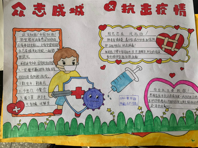老師們精心準(zhǔn)備的“弘揚(yáng)偉大的抗疫精神”的主題班會的教案、課件;學(xué)生收集的感人抗疫小故事;以班級為單位開展了“弘揚(yáng)偉大的抗疫精神”的主題班會,學(xué)生講述的抗疫小故事;學(xué)生在國旗下拳拳的莊嚴(yán)宣誓;學(xué)生鏗鏘感人的抗疫演講比賽;學(xué)生內(nèi)容豐富、栩栩如生的手抄報;全體師生均在活動中談感想,寫反思,無不為中國在世界上樹立一個負(fù)責(zé)任、有擔(dān)當(dāng)?shù)拇髧蜗?,無不為自己是一名中國人而產(chǎn)生深深的自豪感!