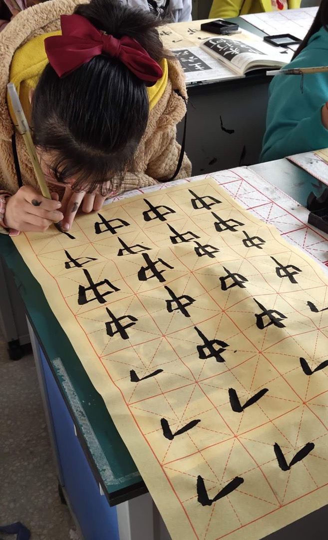 萬金鎮(zhèn)栗門張小學(xué)六(1)張張童童抗疫書法比賽作品