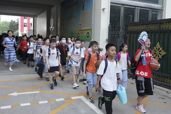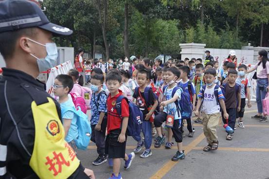 18點(diǎn)15分,錯峰放學(xué)的三、四年級學(xué)生按照南北兩隊(duì)分別從學(xué)校南北兩個大門走出,行至各自的接送點(diǎn)。18點(diǎn)30分,最后放學(xué)的高年級學(xué)生也分成兩隊(duì)走出校門,18點(diǎn)40分,全校學(xué)生全部有序離校,沒有擁堵現(xiàn)象發(fā)生。