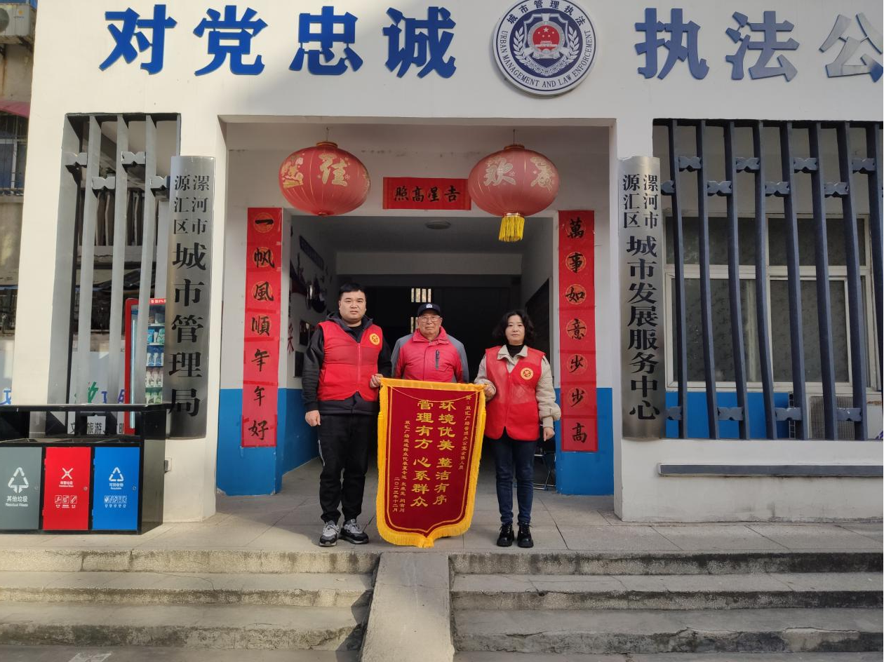 “太感謝你們了,給我們這些老戲迷創(chuàng)造這么好的戲曲場(chǎng)地,讓我們過(guò)足了戲癮”。12月7日,雙匯廣場(chǎng)戲迷愛(ài)好者代表史先生、閆先生將一面金字紅底的錦旗送到了源匯區(qū)城市發(fā)展服務(wù)中心,上書“環(huán)境優(yōu)美 整潔有序 管理有方 心系群眾”,感謝源匯區(qū)城市發(fā)展服務(wù)中心雙匯廣場(chǎng)學(xué)雷鋒志愿服務(wù)站志愿者一直以來(lái)的志愿服務(wù)工作。