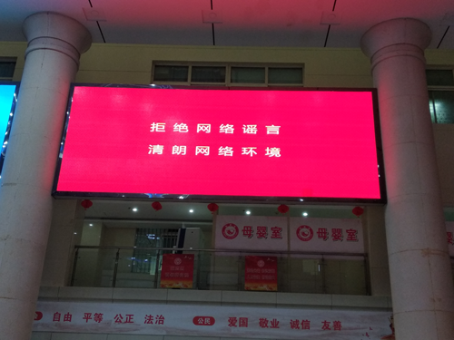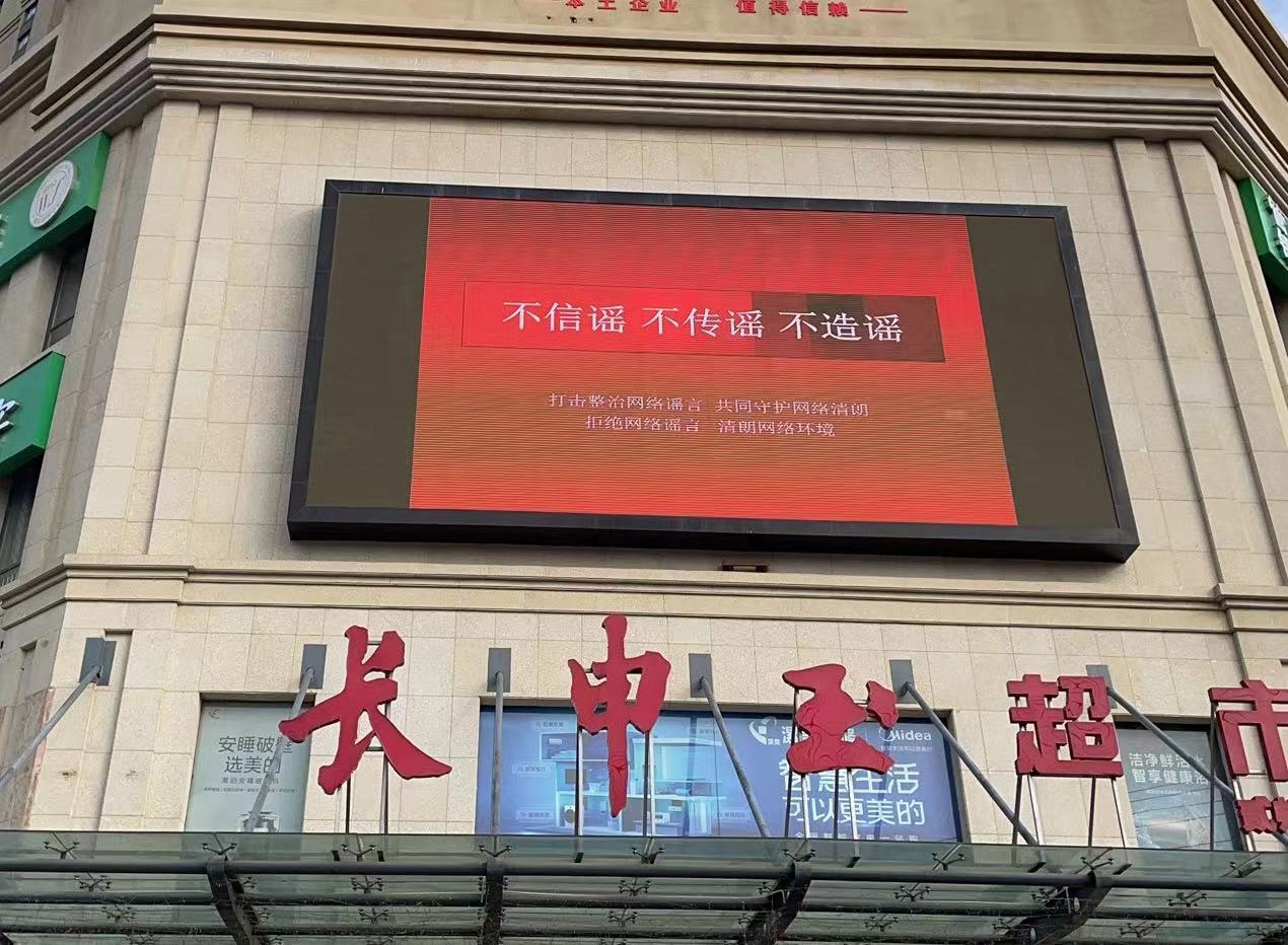 據了解,近半年來漯河市在人群集中的多個地方看到電子屏上打擊整治網絡謠言電子字幕。