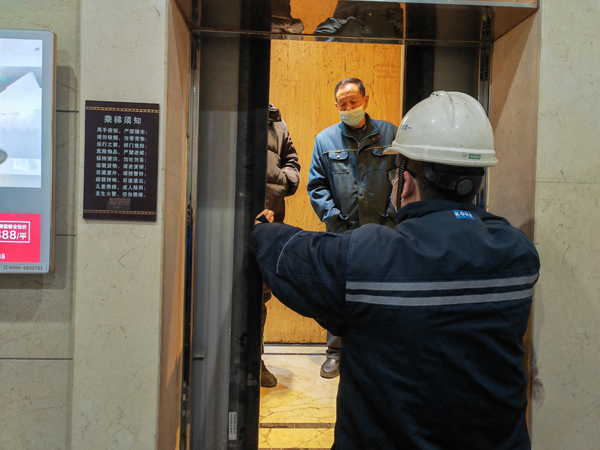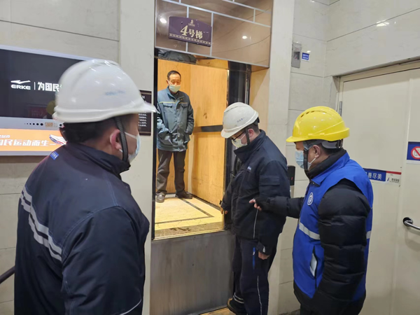 演練中,通過模擬電梯在降雪冰凍等惡劣天氣停電出現(xiàn)電梯困人事故。被困人員通過撥打96333電梯應(yīng)急救援電話向市電梯應(yīng)急處置中心進行求救,中心接警人員立即指派電梯所屬維保單位維保人員前往救援,現(xiàn)場安全解救被困人員,及時排除電梯故障,最后對電梯全面檢查后恢復(fù)正常運行。