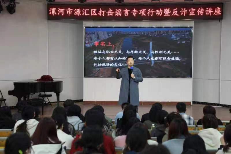 漯河市公安局源匯分局民警耿涵以通俗易懂、喜聞樂見的方式,普及網(wǎng)絡(luò)謠言危害,使廣大師生對網(wǎng)絡(luò)謠言的危害和嚴(yán)重性有了更深入的認識,進一步提高了師生防范和抵制網(wǎng)絡(luò)謠言的意識和能力。同時通報了轄區(qū)高校電信網(wǎng)絡(luò)詐騙案件的發(fā)案情況和涉詐人員情況,呼吁在校學(xué)生作為新時代有知識、有理想的學(xué)生,一定要用自己的知識武裝頭腦,遠離灰色網(wǎng)絡(luò),切不可成為電信網(wǎng)絡(luò)詐騙的幫兇。