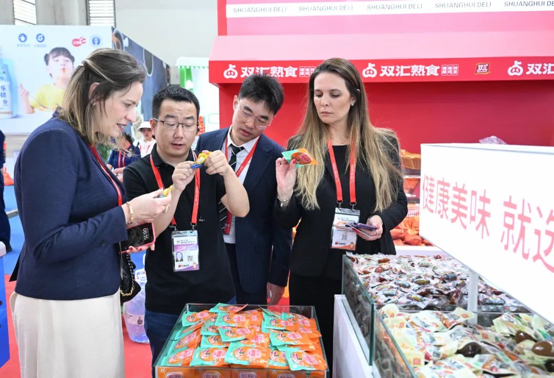 肉制品綜合展區(qū)展示了簡頌午餐肉、炫動番茄香腸、爆漿芝士腸、爆漿芝士魚餅等新品,金馬可減鹽火腿腸、輕咔能靚雞胸肉腸、辣嗎?辣、輕享雞肉腸等特色產(chǎn)品,還有泡椒豬皮、虎皮雞爪、熏烤肉腸、多彩烤肉餅等休閑零食,品種豐富、口味多樣,可以滿足不同消費(fèi)需求。