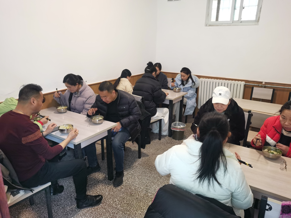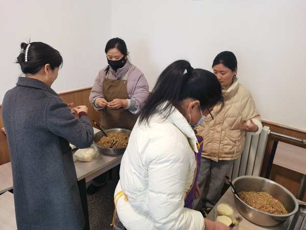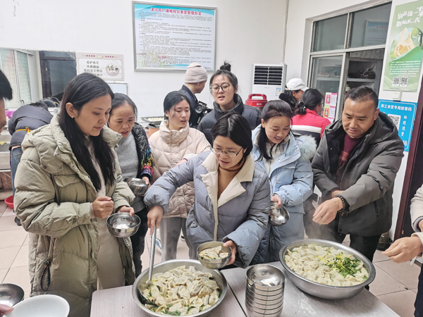 10點(diǎn)半,臺領(lǐng)導(dǎo)和職工代表來到職工餐廳組織包餃子活動。臺工會提前準(zhǔn)備好了20多斤羊肉、豬肉餃子餡,大家分工協(xié)作,有人搟餃子皮,有人包餃子,有人燒水煮餃子,經(jīng)過一個多小時(shí)的準(zhǔn)備,一盆盆熱氣騰騰的餃子端上餐桌,大家在其樂融融的氛圍中,度過了一個意義非凡的冬至節(jié)。