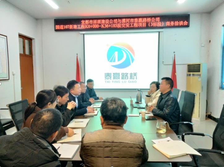 泰贏路橋工程有限公司與湖北省宜都市祥順建設(shè)工程有限公司進行商務(wù)洽談