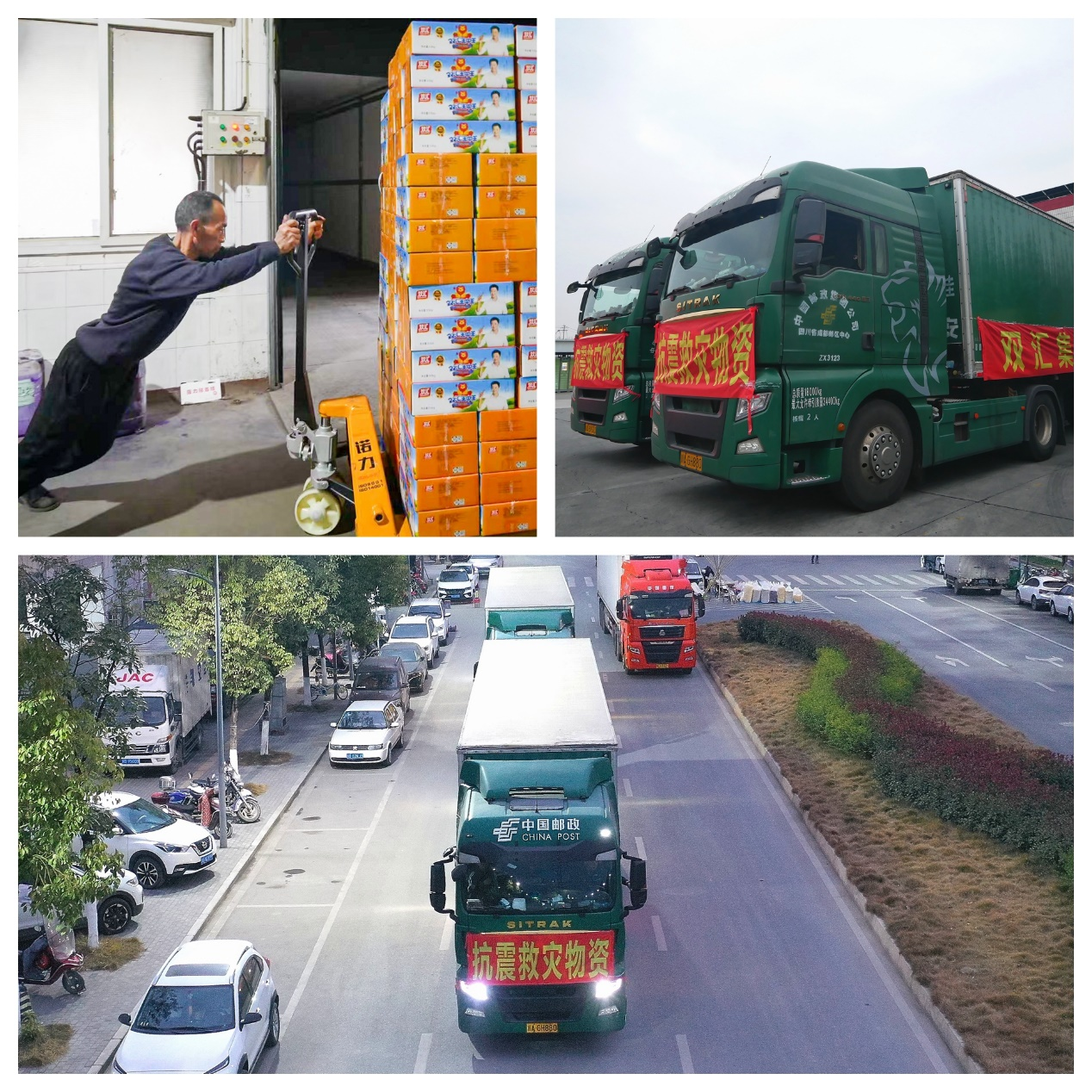1月12日,雙匯集團從四川綿陽公司調(diào)撥的1萬件火腿腸等食品通過中國郵政快遞專車發(fā)往西藏日喀則市定日縣地震災(zāi)區(qū)。
