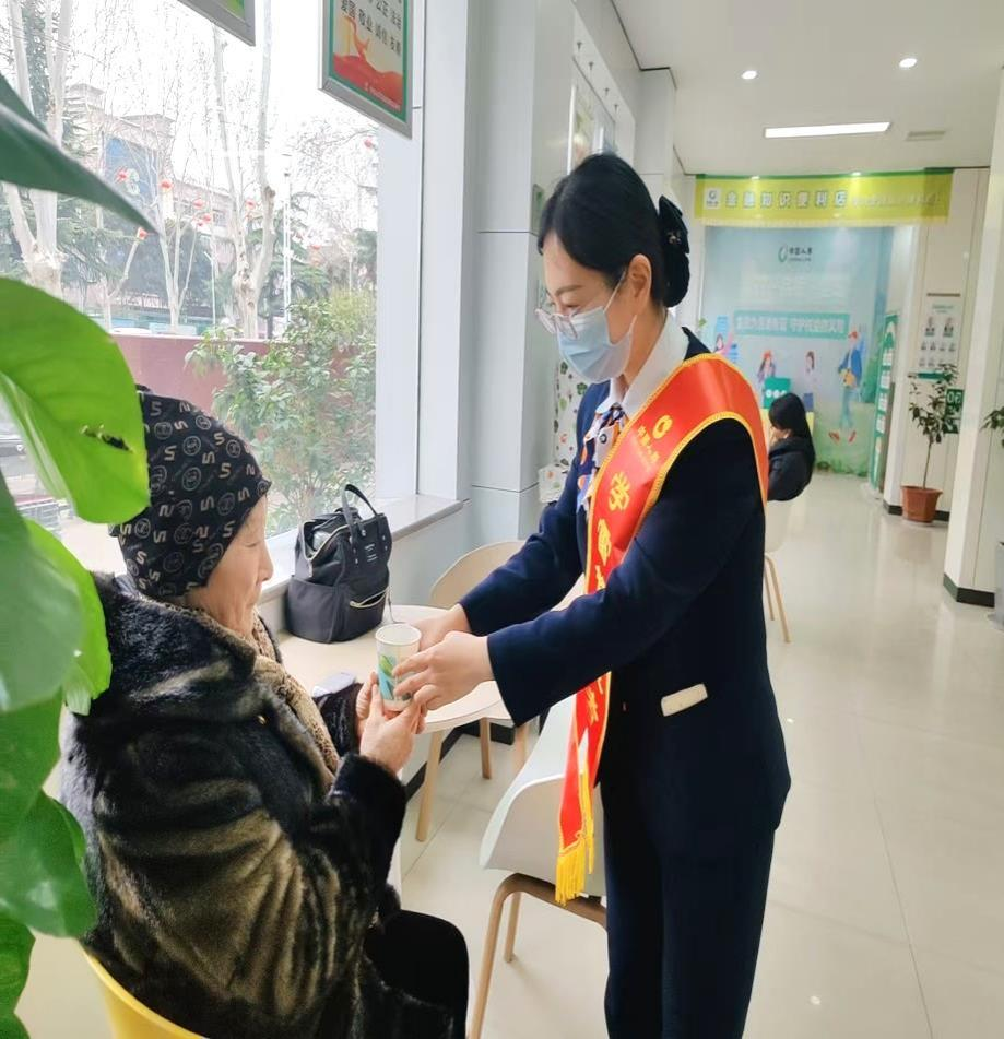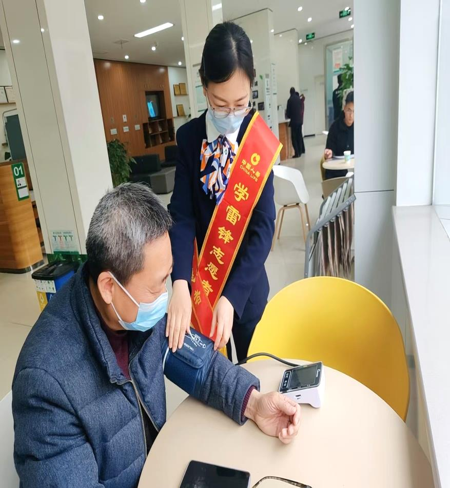 活動(dòng)當(dāng)天,營業(yè)廳內(nèi)設(shè)置了“雷鋒服務(wù)崗”,身披紅色綬帶的志愿者們熱情滿滿。為客戶提供熱情周到的服務(wù),協(xié)助客戶辦理業(yè)務(wù),耐心協(xié)助填寫各種表格,為客戶端上熱水,并為老年人測量血壓,用溫暖的微笑和貼心的服務(wù),讓客戶在辦理業(yè)務(wù)的同時(shí)感受到了濃濃的關(guān)懷。