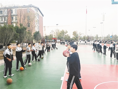 3月6日9點40分,下課鈴聲響起,郾城中學的學生迅速涌向操場。學生們排好隊,在老師的帶領(lǐng)下有節(jié)奏地跑步、拉伸放松,分組參與立定跳遠、跳繩、籃球等豐富多彩的體育項目。每一組學生都有體育教師指導,確保他們掌握正確的運動技巧,操場上洋溢著青春的氣息。