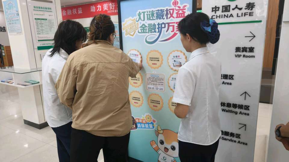 為積極響應(yīng)監(jiān)管部門的號召,切實提升社會公眾金融素養(yǎng),守護(hù)金融消費者合法權(quán)益,在2025年9月15日至21日金融教育宣傳周期間,中國人壽壽險漯河分公司在黃河路柜面消保教育宣傳基地設(shè)置“消保能量加油站”宣傳專區(qū),開展“燈謎藏權(quán)益,金融護(hù)萬家”活動。