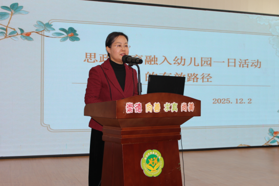 漯河市市直幼兒園黨總支書記王麗亞在致辭中表示,落實好“立德樹人”根本任務(wù),是時代賦予我們幼教工作者的神圣使命。要在幼兒純凈的心靈深處播撒真、善、美的種子,培育他們愛祖國、愛家鄉(xiāng)、愛集體、愛勞動的真摯情感,涵養(yǎng)誠實、友善、守紀(jì)的良好品德與行為習(xí)慣,幫助他們扣好人生第一??圩印K喴榻B了市直幼兒園在幼兒思政教育領(lǐng)域的點滴探索與心得體會,期待在接下來的活動中與教育同仁互學(xué)互鑒、凝聚智慧,共同探尋科學(xué)育人路徑,筑牢幼兒品德根基。