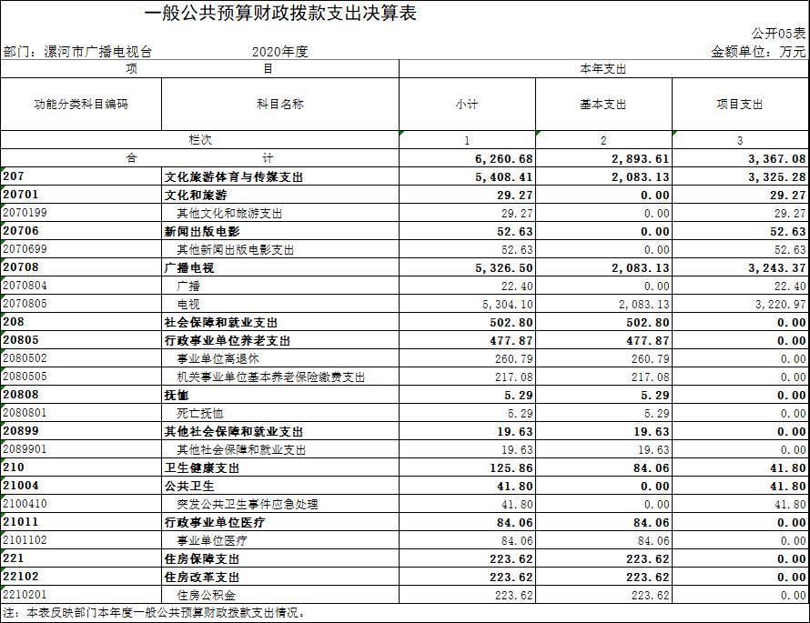 2020年度一般公共預算財政撥款支出年初預算為6770.93萬元,支出決算為6260.68萬元,完成年初預算的92.46%。其中: